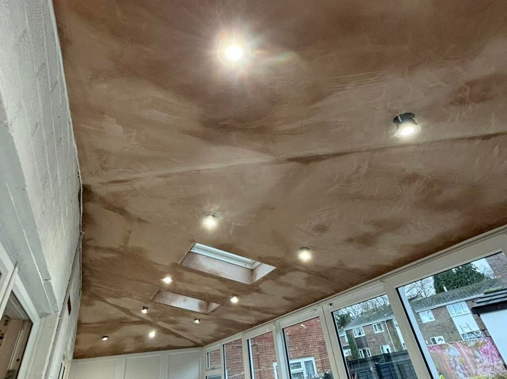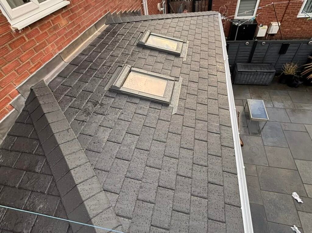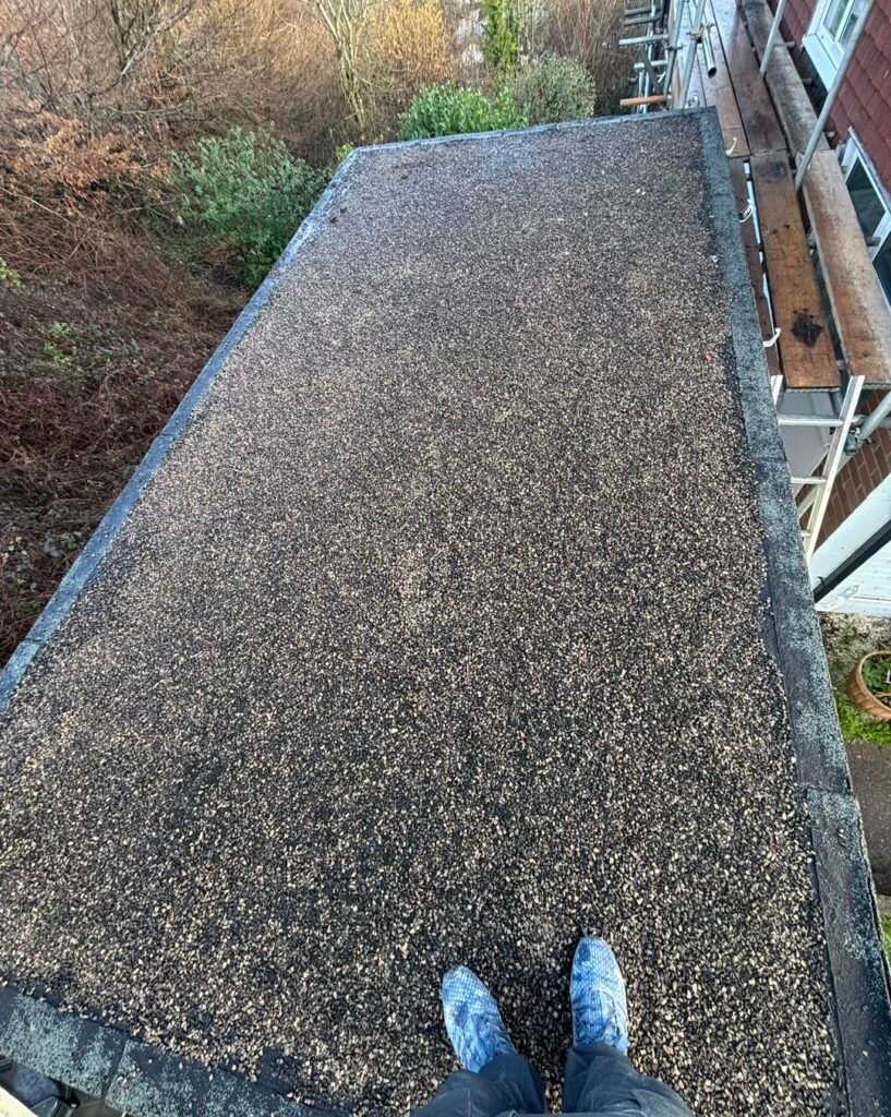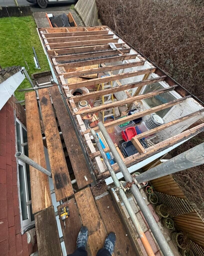 Old garage roof causing water damage so we stripped it back, added firring timbers for a nice gentle fall.