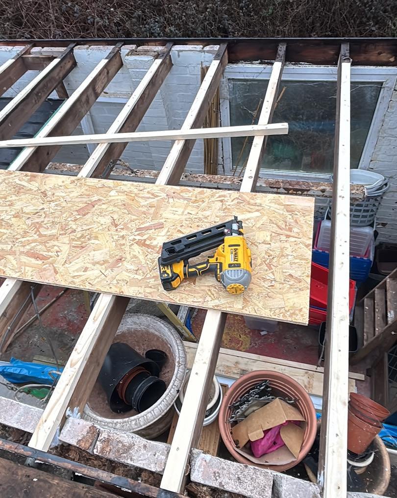 All new OSB boards + EPDM rubber roof fitted. Job done — watertight and built to las